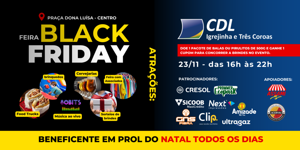A Black Friday é uma data internacional de descontos e oportunidades. Sabendo disso, a CDL de Igrejinha e Três Coroas realiza, no próximo domingo (23), a Feira […]